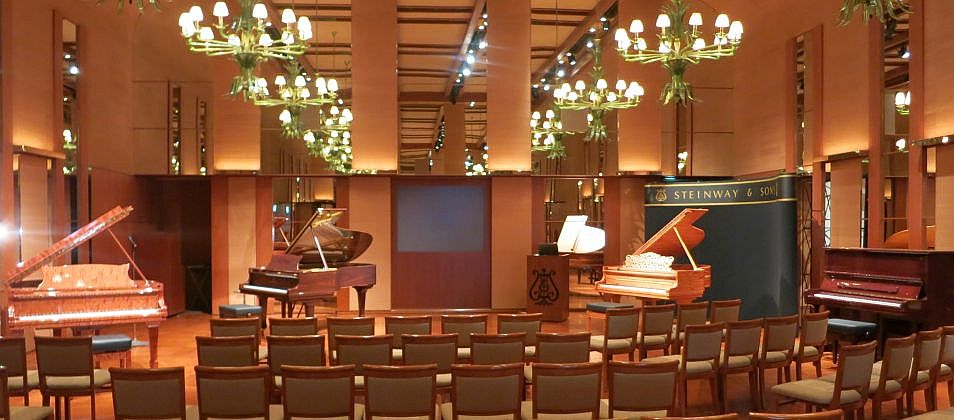 当日は、「クラウンジュエル」シリーズの3台も披露され、スタインウェイの伝統あるクラフトマンシップによってつくられた美しい木目のピアノの数々が、お洒落なホテルの空間を贅沢に彩りました。